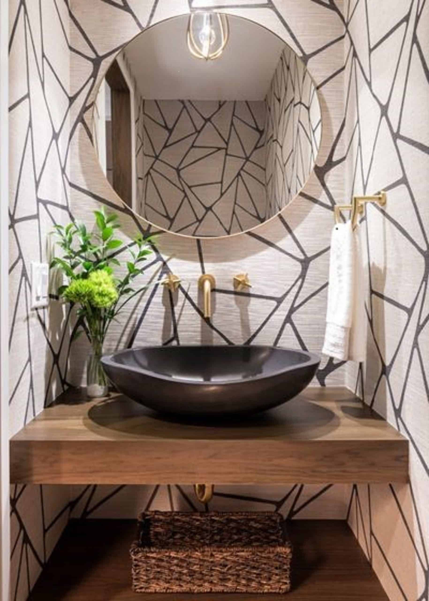 Big and bold patterned wallpaper is perfect for the powder room. Choose a pattern that speaks to you, whether it be florals, large stripes, or geometric shapes. Don’t worry about picking a higher priced pattern. The powder room is small so a more expensive pattern won’t break the bank.